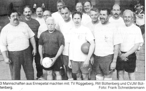 Ennepetal. Die TG Witten gewann gestern das 9.Prellball-Turnier von Rot-Weiss Büttenberg. Im Finale besiegten sie TV Städtisch Rahmede. 12 Mannschaften u.a. aus Ennepetal, Wuppertal, Witten, Heme und Sprockhövel traten in der Sporthalle des Reichenbach-Gymnasiums gestern gegen einander an. Im ersten Spiel musste der TV Rüggeberg dann mit 34 zu 24 Punkten leider gleich eine heftige Niederlage gegen die Favoriten von ESV Wuppertal einstecken. Im Lokalderby mit CVJM Büttenberg hatte Gastgeber Rot-Weiss Büttenberg im ersten Gruppenspiel die Nase vorn.