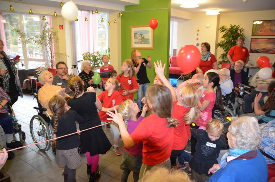 Abschließend vergnügten sich alle beim Volleyballspiel mit bunten Luftballons. Mit viel Applaus