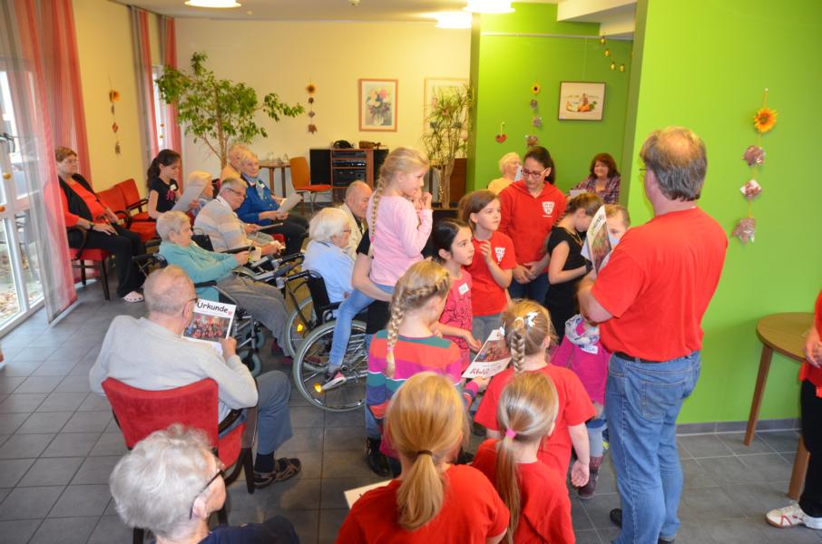 seinem Seniorpartner eine Urkunde mit dem gemeinsamen Gruppenfoto. Die Senioren freuten sich sehr über diese schöne Erinnerung.