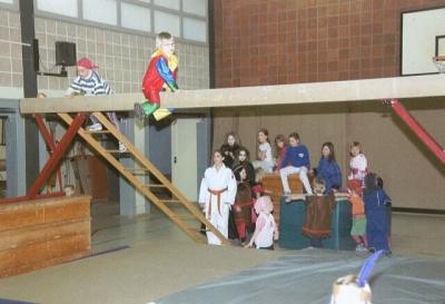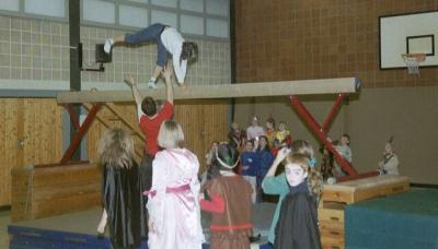 Akrobatik auf dem Schwebebalken, Rutschen von der Sprossenwand und andere Spiele