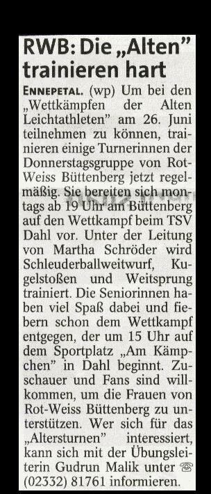 unverbindlich möglich. Nachfragen ist bei Übungsleiterin Gudrun Malik vom RW