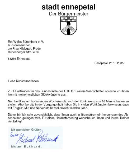 Grüße vom Präsidium des Westfälischen Turner Bundes (WTB).