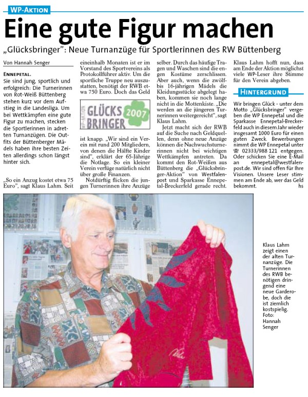 Wir haben mit Eurer Hilfe den dritten Platz erreicht und erhalten einen Zuschuß für die neuen Turnanzüge über 200 Euro.