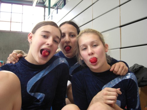 Wettkampfpause in der Gauliga etwas Obst zwischendurch für Mona Morgenstern,Vanessa Kehrein und Kathrin Diederichs |