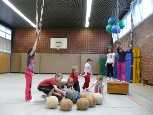 Übungsleiterin Gudrun Malik verbindet Geschichten und Kenntnisse im Lebensraum von Tier, Pflanzen und Mensch mit den passenden Bewegungsangeboten. Die Grundschulkinder werden hier in verschiedenen Stundenbildern motorisch und koordinativ trainiert. Die Wahrnehmung wird in allen möglichen Bereichen gefördert. Vor allem die Bewegung in der Gruppe im spielerischen und sportlichen Miteinander, die Vermittlung sozialer Kompetenz und Integration der Kinder stehen im Mittelpunkt.